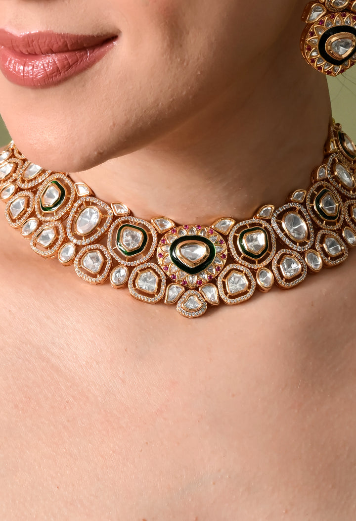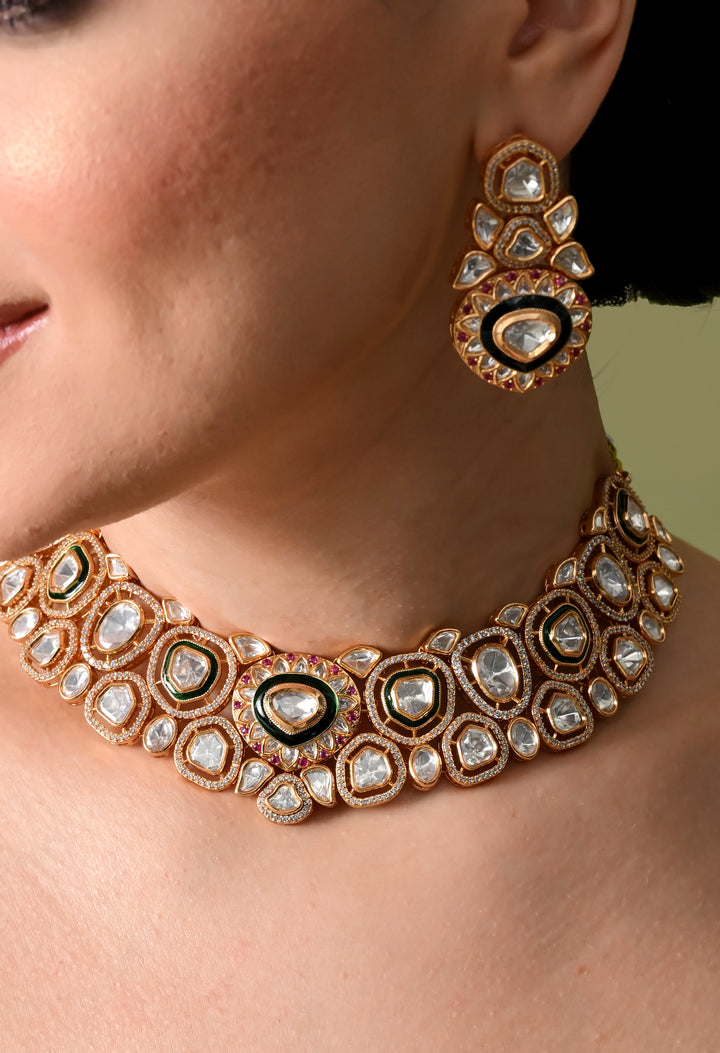 Introducing the Dazzling Elegance Artistic Necklace Set, a stunning piece that will make you shine like a star! Adorned with sparkling gemstones in vibrant red and green, this necklace features a beautiful design that showcases intricate shapes and radiant details. Whether you're dressing up for a party or just want to feel special, this necklace adds the perfect touch of glamour to any outfit. Its unique blend of colors and dazzling stones guarantees all eyes will be on you. Don't miss out on owning this gorgeous treasure that celebrates your unique style!