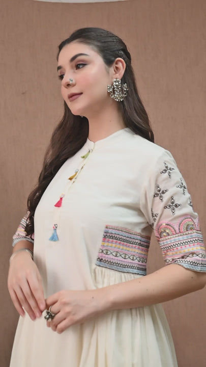 Step into style with our Elegant Off-White Sequin Co-ord Set! Made from soft cotton and thoughtfully lined, this outfit offers comfort and elegance. Its long, A-line silhouette is enhanced by shimmering sequins and intricate thread work, making it perfect for special occasions. The half sleeves and classic collar add a trendy touch, while the pants feature a convenient side pocket for your essentials. It’s not just a set; it’s a statement! Grab yours now and shine bright at your next event!