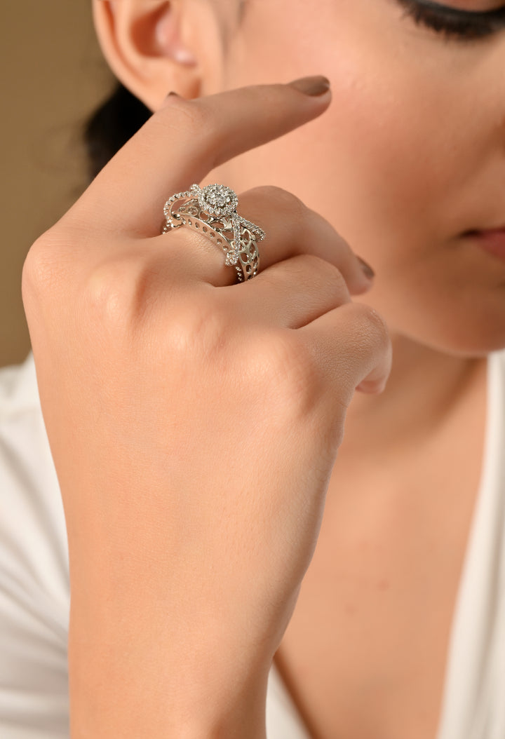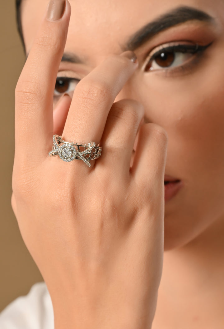 Discover the magic of the Enchanted Silver Radiance Ring! This stunning piece features a sparkling centerpiece surrounded by intricate filigree designs, perfect for making any outfit shine. Made with high-quality silver, it catches the light beautifully and is sure to get compliments wherever you go. Whether you wear it for special occasions or daily adventures, this ring will bring out your inner sparkle. It's not just a piece of jewelry; it's a statement of elegance! Don't wait—make it yours today and let your style shine bright!
