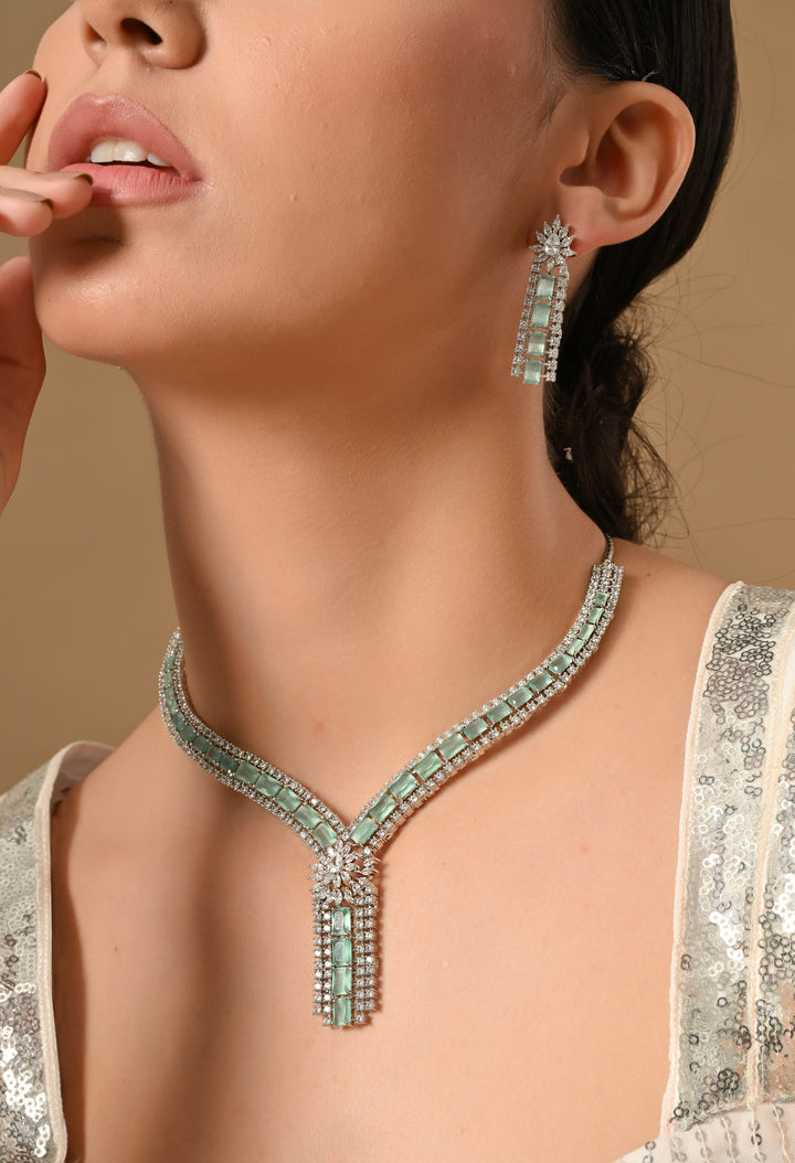 Introducing the stunning Enchanting Emerald Elegance Necklace Set! This beautiful jewelry set features a sparkling necklace and matching earrings, designed to make you feel like royalty. The shimmering emerald stones are surrounded by dazzling crystals, creating a magical effect that will catch everyone's eye. Perfect for special occasions or everyday wear, this set adds a touch of glamour to any outfit. Imagine wearing this elegant jewelry and receiving compliments everywhere you go! Don’t wait—embrace the beauty and charm of this exquisite set today!