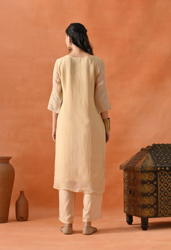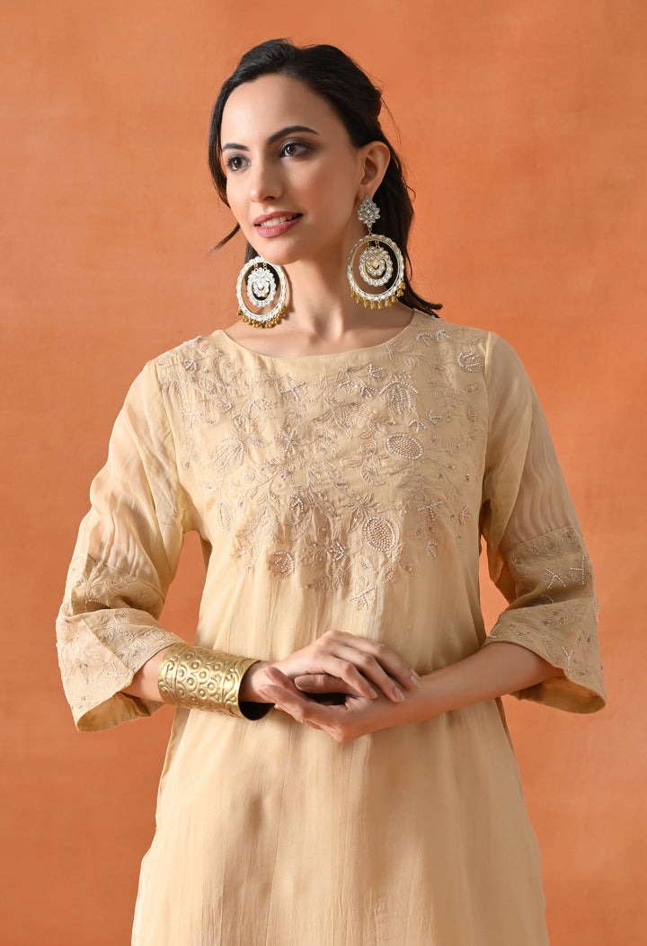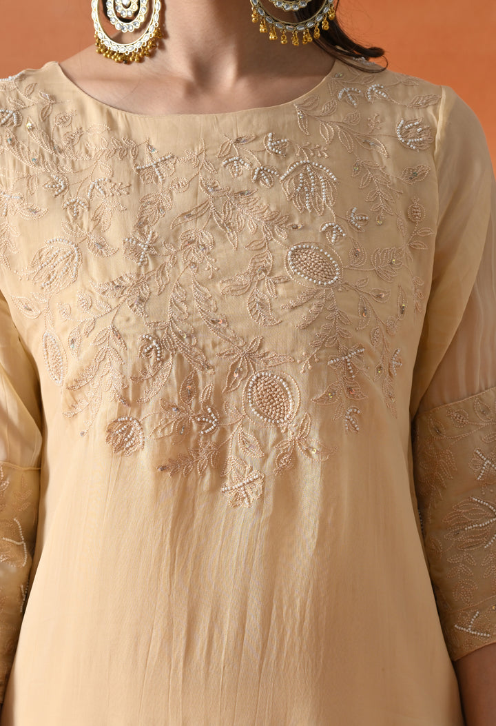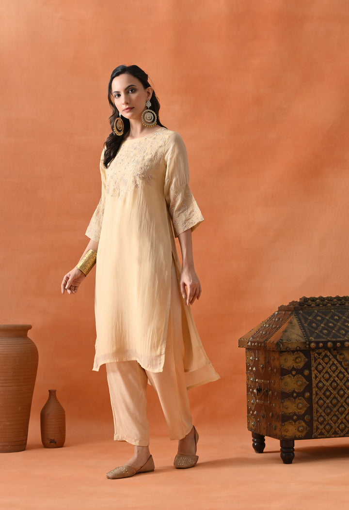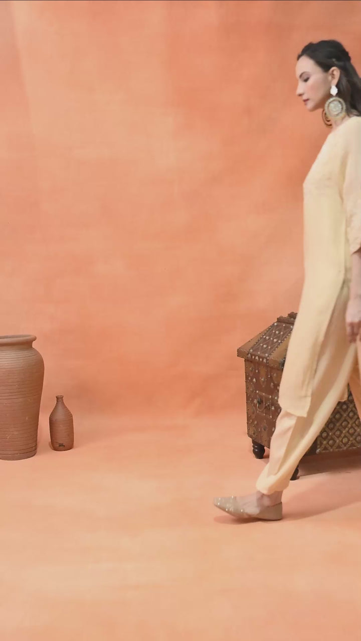This beautiful Pakistani suit is made from soft organza crepe fabric. It shines with lovely thread work, cut dana, sequins, and pearl details that make it perfect for special occasions. The light orange color gives a fresh and bright look. The half sleeves and round neck add a simple yet graceful style. The pants come with a handy pocket for convenience. The suit has a lining for extra comfort and a smooth feel. It’s a perfect outfit for anyone who wants to look stylish and feel comfortable. Buy this amazing suit today and shine at your next event!