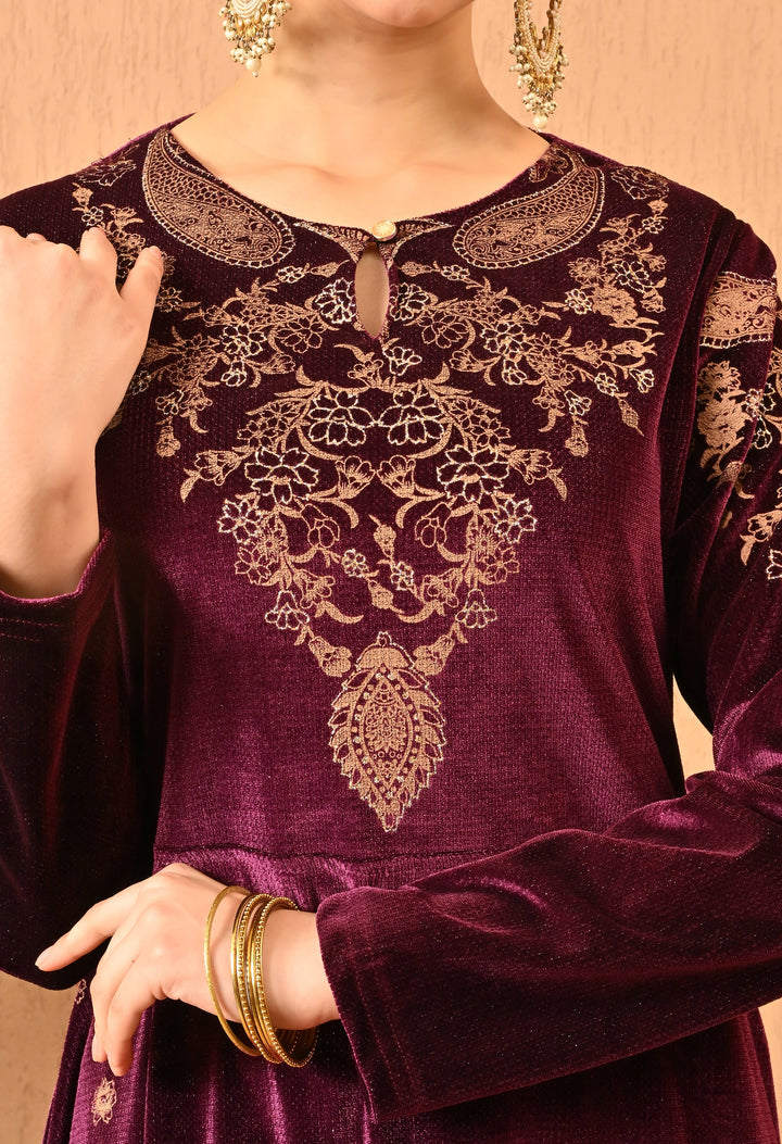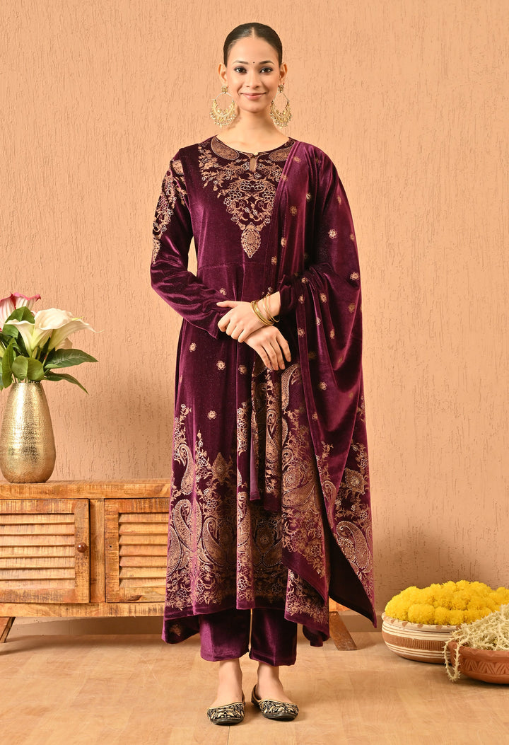 Dazzling Golden Print Work: Intricate golden prints elevate the suit, adding a royal touch to your ensemble.