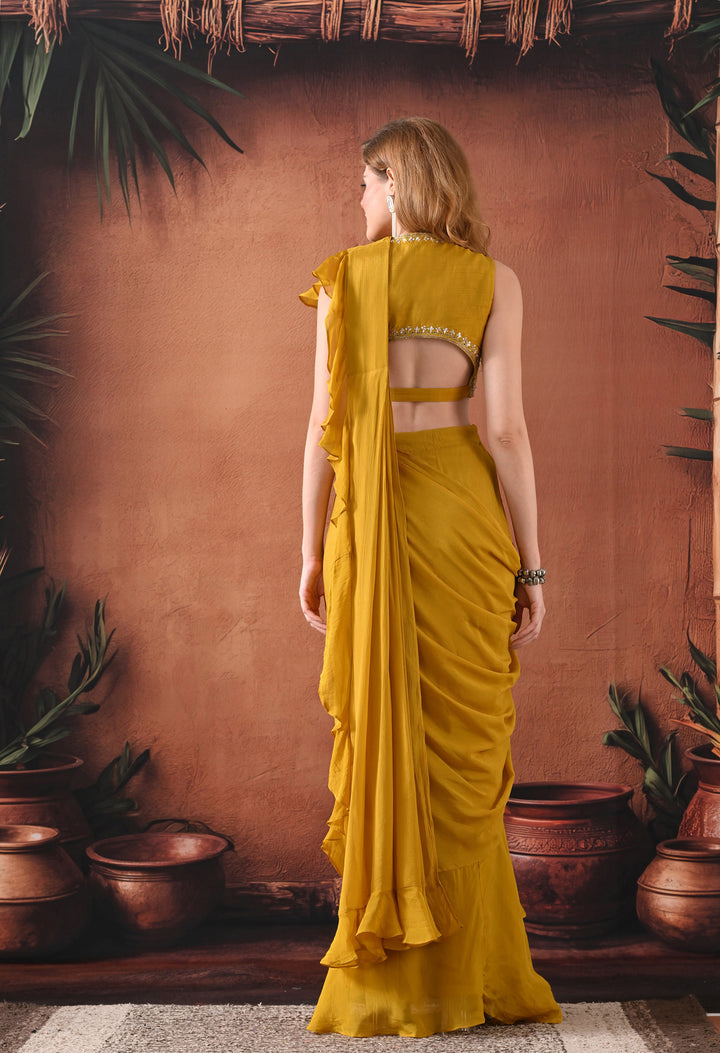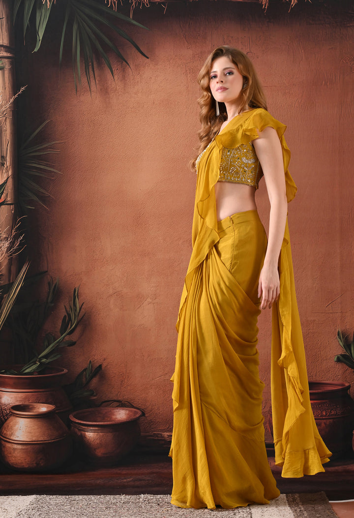 Mustard Yellow Ruffle Pallu Skirt Saree