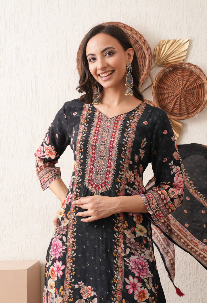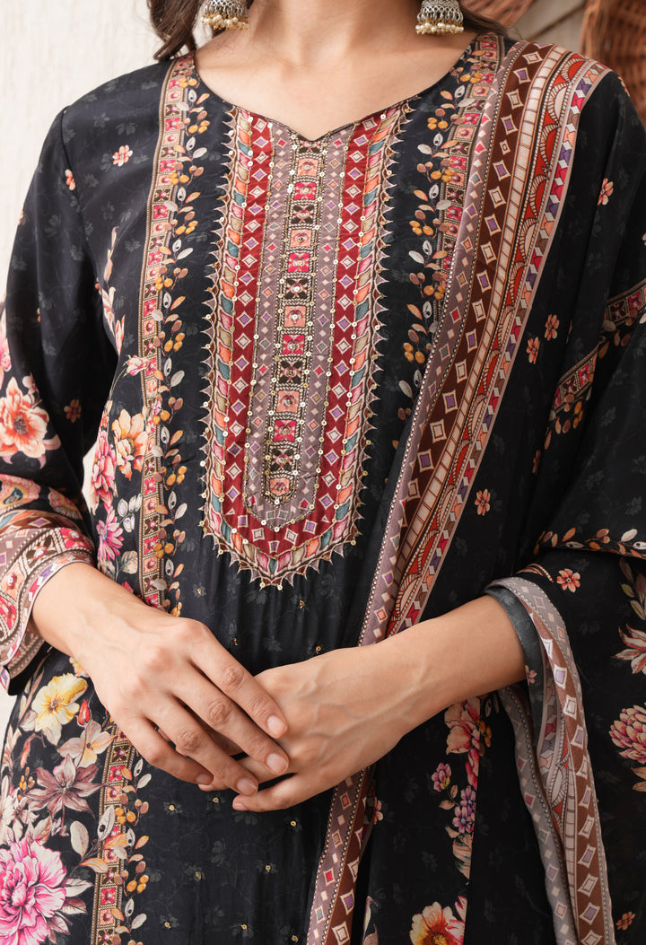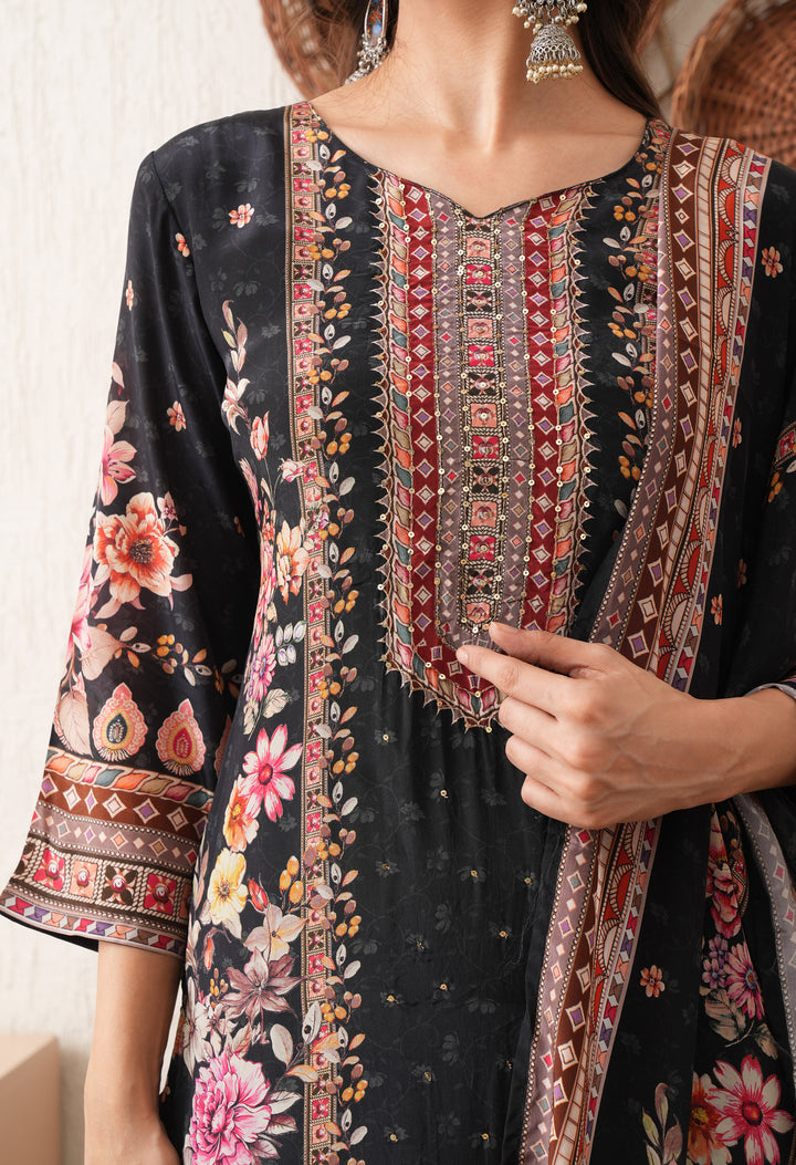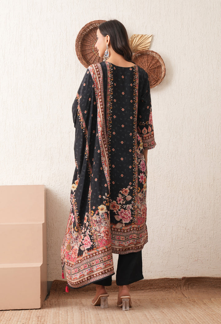 Noore Black Bloom Crepe Suit Set