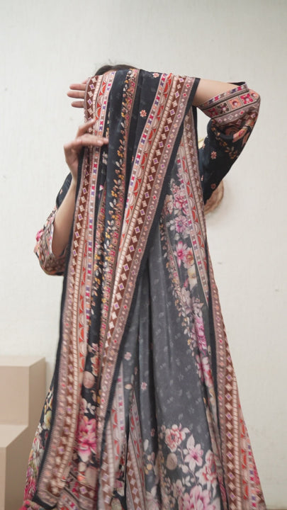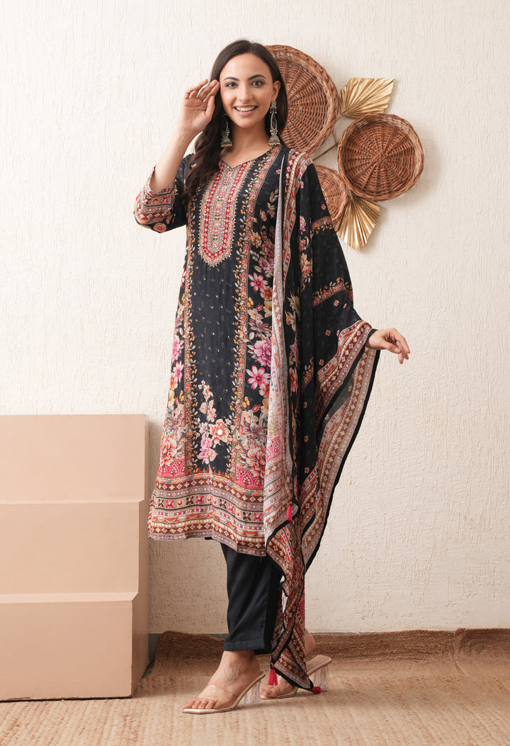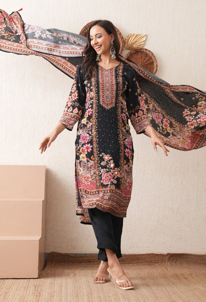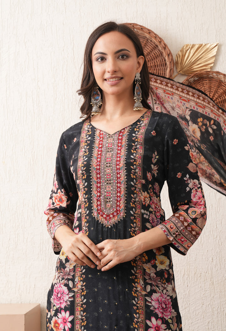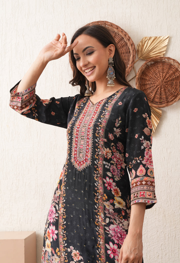 Noore Black Bloom Crepe Suit Set