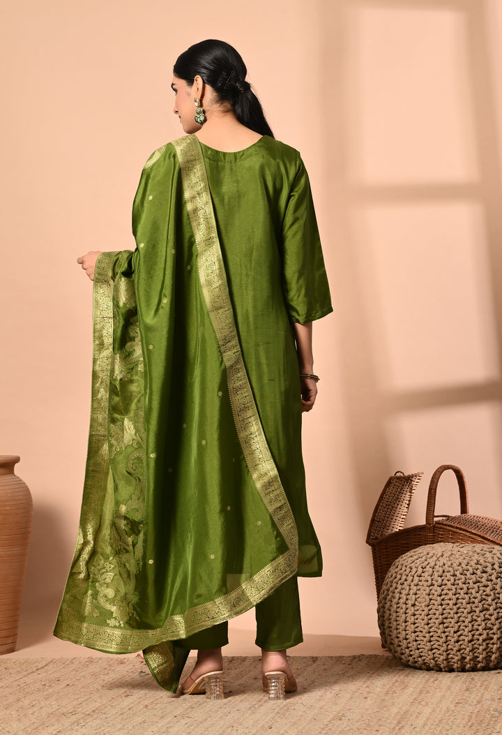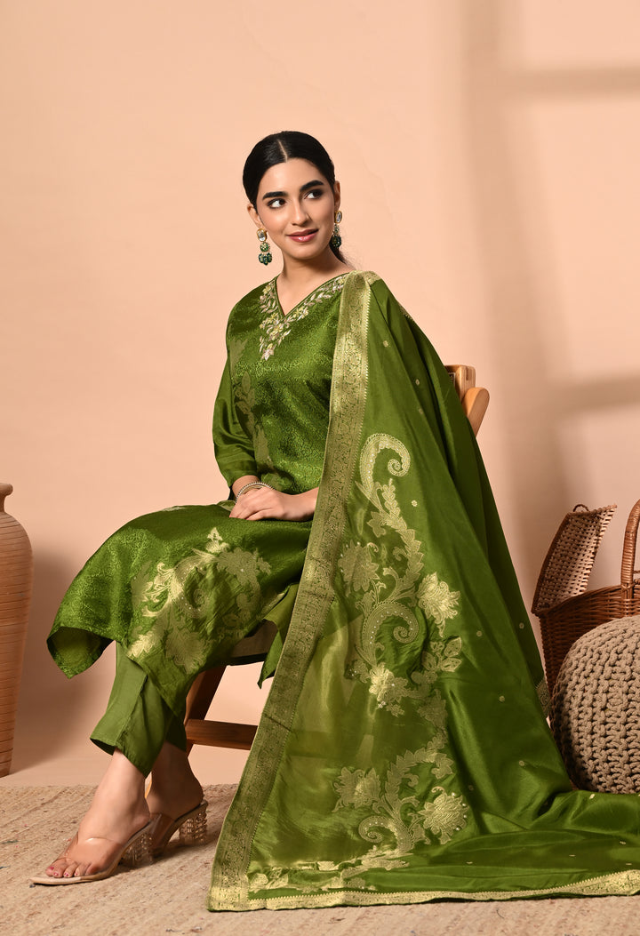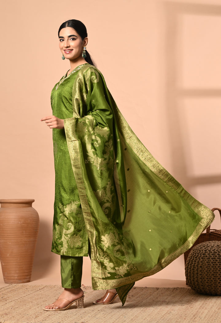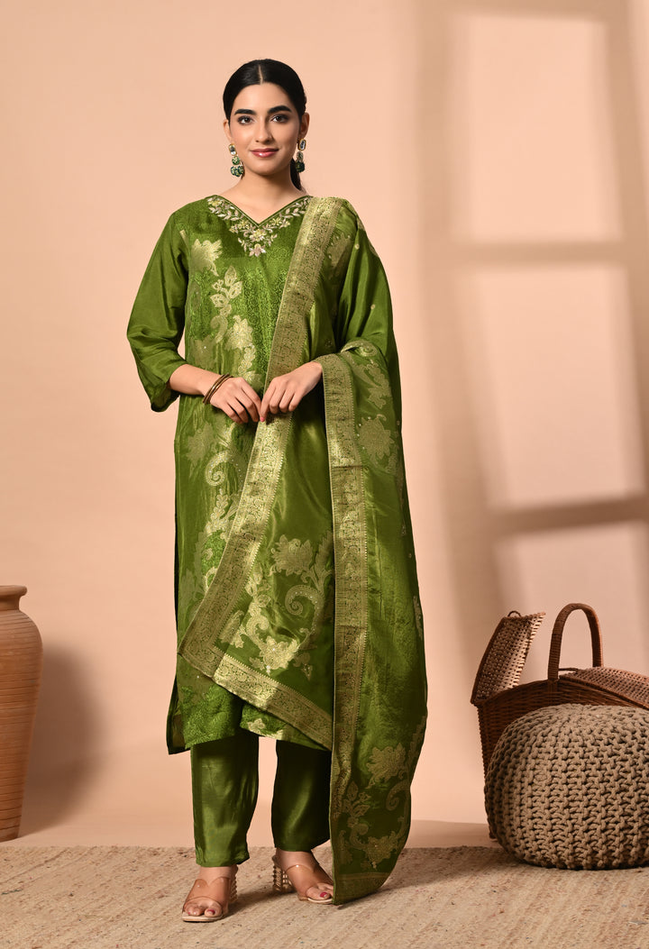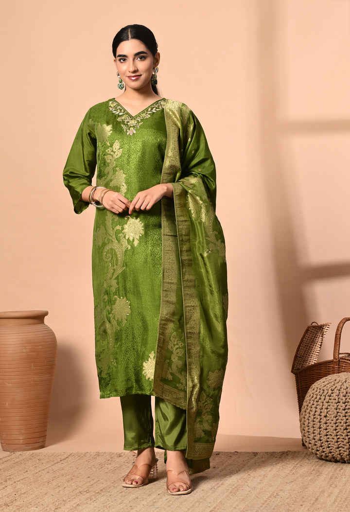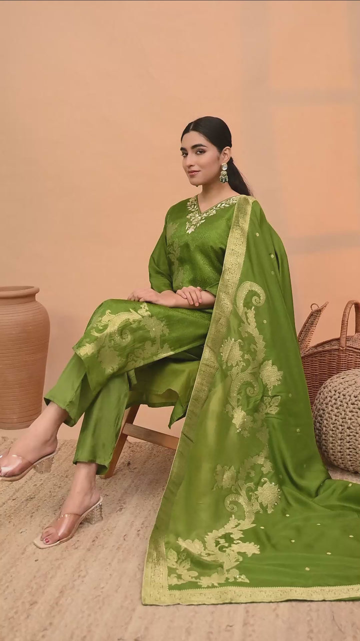 Luxurious Brasso Silk Fabric: Made from high-quality brasso silk, this suit feels soft, comfortable, and regal.