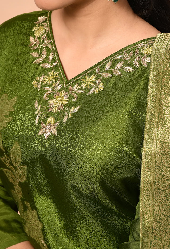 Rich Green Hue: The deep green shade enhances your elegance and makes you stand out effortlessly.