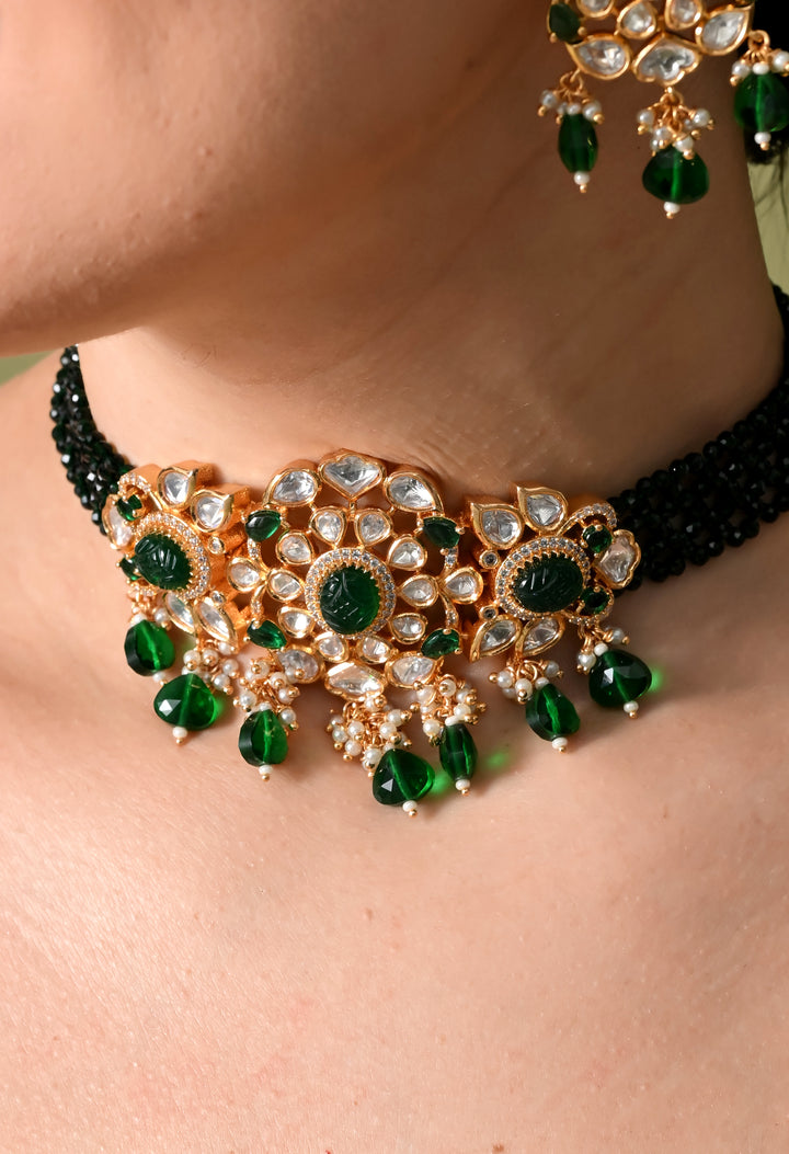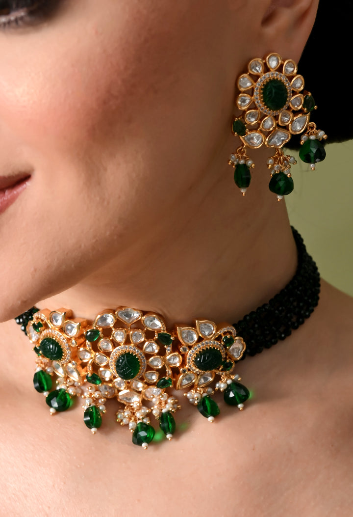Shimmering Emerald Floral Necklace Set