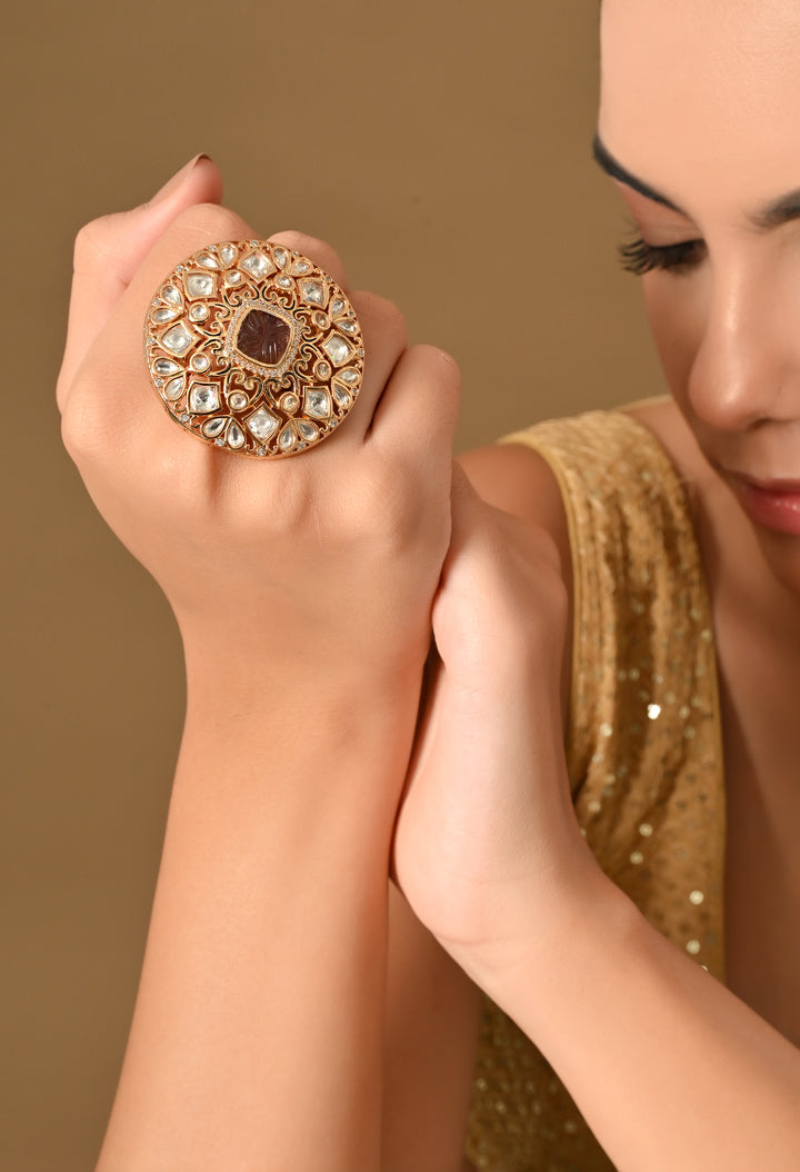 Introducing the Shine Like a Star Ring, a stunning piece of jewelry that will make you feel special every day! This hand ring features a beautiful golden design adorned with sparkling stones that catch the light perfectly. It's the ideal accessory for any occasion, whether it's a party or a casual day out. With its bold and elegant look, you'll be the center of attention wherever you go. Don't miss out on the chance to add this gorgeous ring to your collection—get ready to shine like a star!
