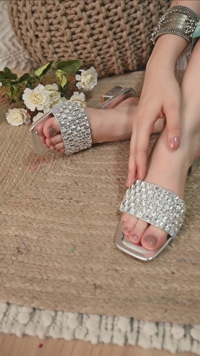 Sparkling Silver Glamour Slide Sandals
